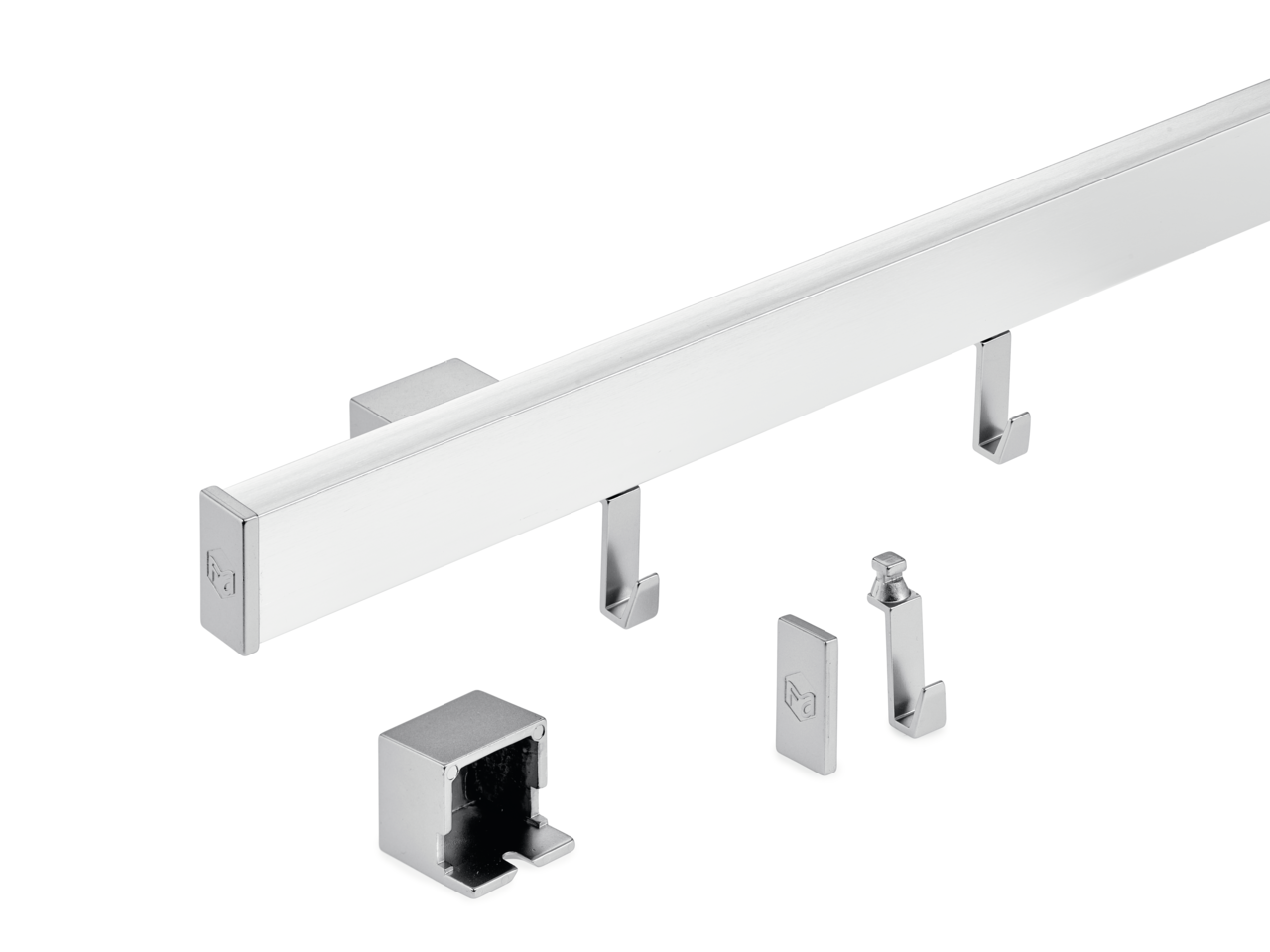 - Set bestehend aus: 2 Halterungen, 2 Endkappen, 3 Haken