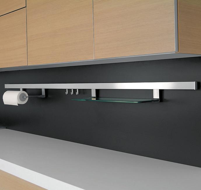 Nischenreling Linero Alto. Geradlinig, praktisch, elegant mit viel Zubehör L 60,0 cm in edelstahlfarbig