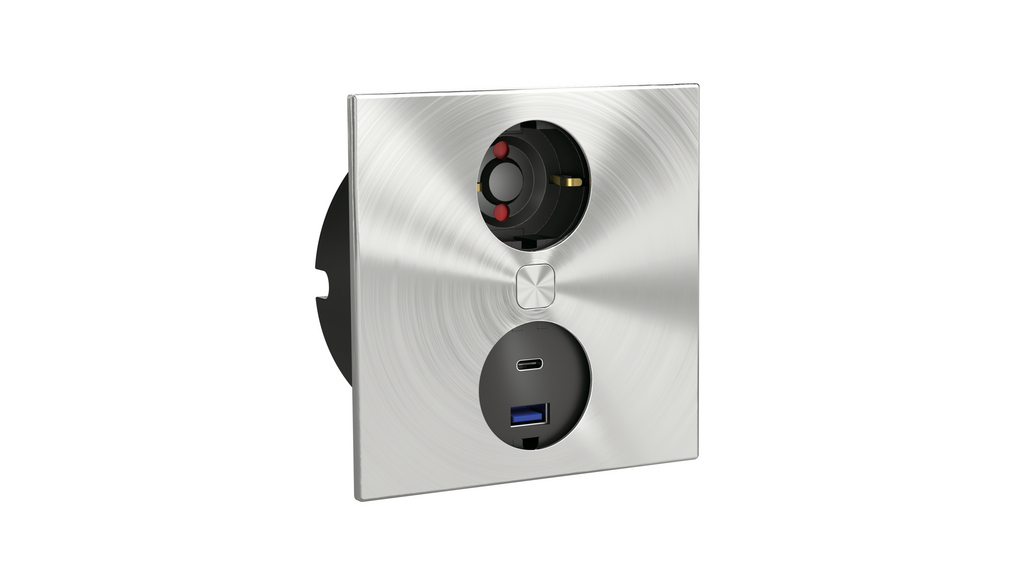 Duplex Doppelsteckdose mit USB zum Einbauen, Edelstahl