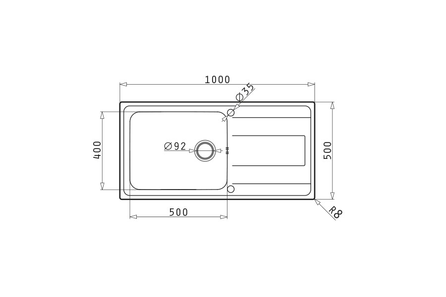 - Beckengröße: L=50,0 cm, B=40,0 cm, T=21,0 cm