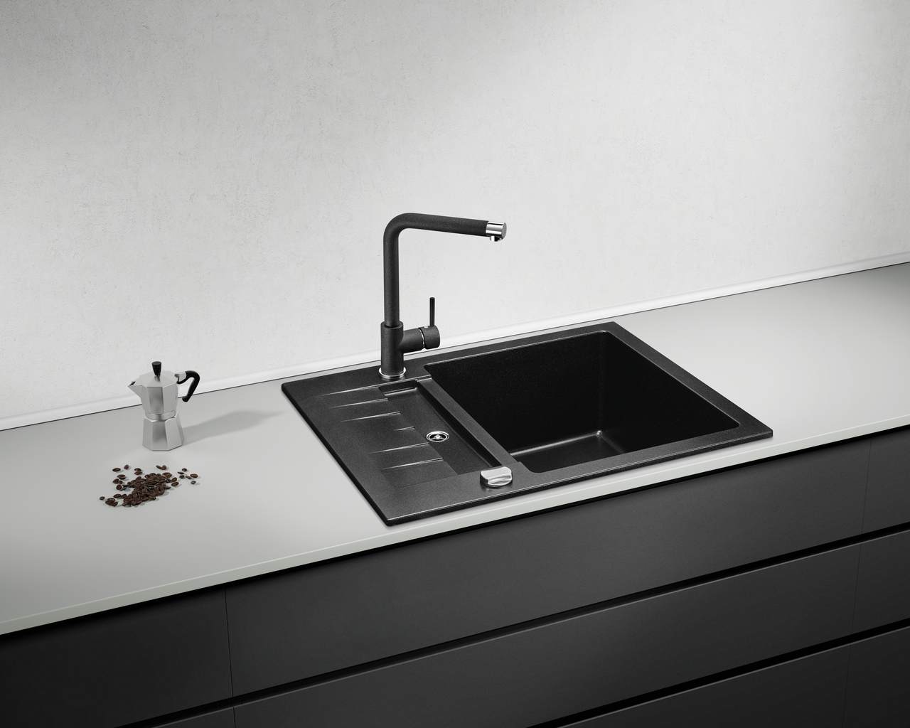 Einbauspüle aus Composite mit kleiner Abtropffläche im edlen Granit Look