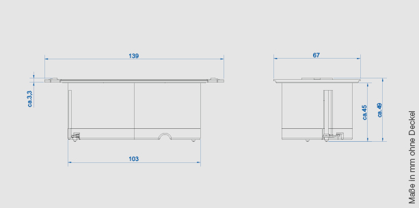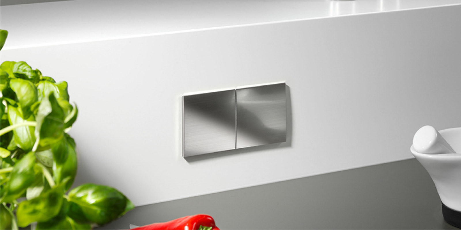 Die ideale Steckdose für Küche und Büro, mit 2 Steckdosen und Schiebedeckel. Zur Montage in Möbelwand oder Arbeitsplatte.