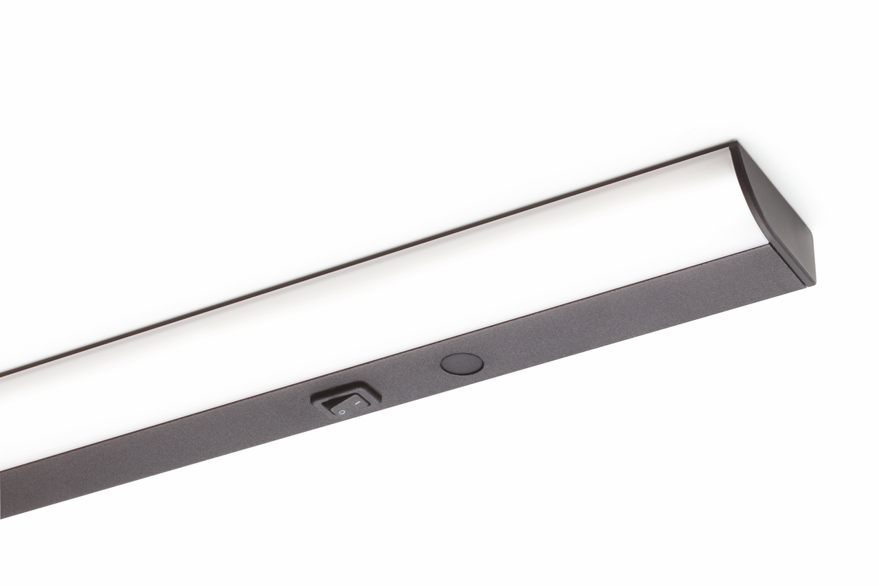 Flache LED Leuchte für 230 V. In unterschiedlichen Längen und zwei Farbausführungen. Integrierte HVLCS Steckverbindung für abstandsfreie Lichtbänder. Alle Leuchten inkl. Schalter, nicht dimmbar.