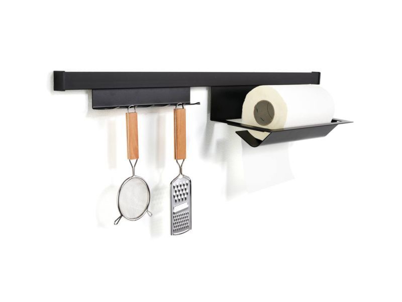 Relingsystem Set Aluminium schwarz matt L= 80,0 cm Ohne LED Beleuchtung Set bestehend aus: 1 Profilleisten Set (1 Leiste L 800 mm, 2 Endstücke), 1 Hakenleiste, 1 Papierrollenhalter