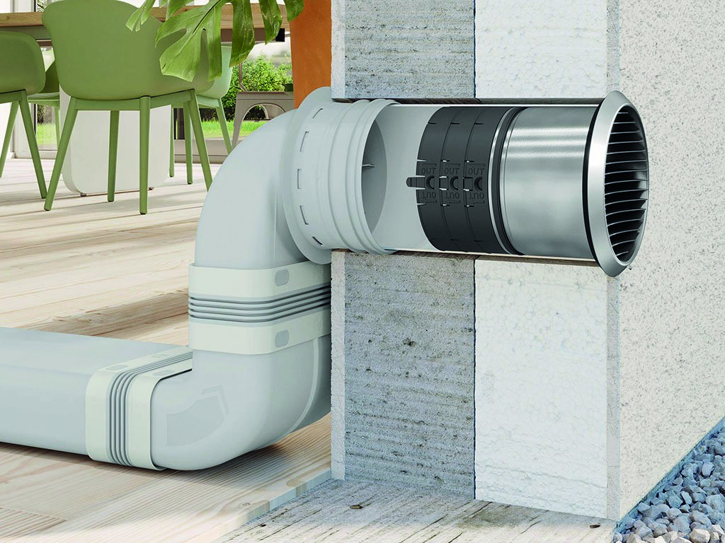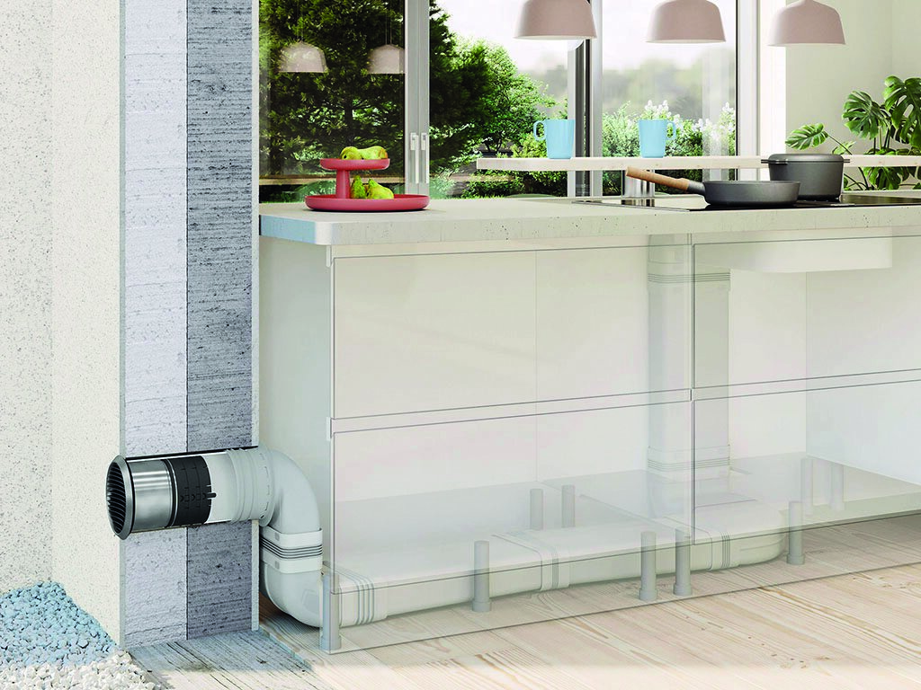 Mauerkasten speziell für den bodennahen Wandeinbau. Optimal bei Downdraft-Abzugssystemen als auch bei herkömmlichen Dunstabzugshauben. Die optimierte Luftführung leitet die Abluft gezielt von der Hauswand ab.