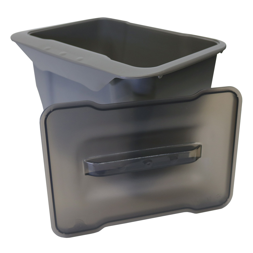 Der vielseitige Abfallsammler mit Deckel zum Einhängen an Schranktüren. Organisationstalent für Reinigungszubehör