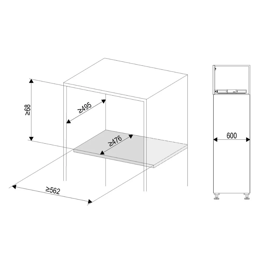 - für 60 cm breite Schränke mit folgenden Maßen: Schrankinnenhöhe ab 6,8 cm, Schrankinnenbreite ab 56,2 cm, Schrankinnentiefe ab 49,5 cm