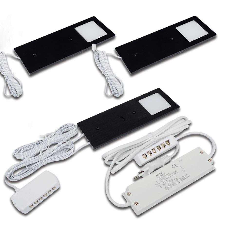 Unterbauleuchtenset für Ihre Küche, 3-fach, schwarz, dimmbar