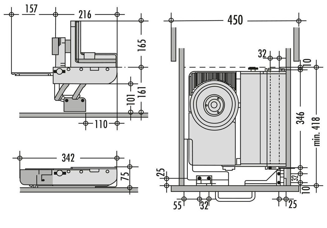 - Zur Montage in Schubkästen ab 45,0 cm Korpusbreite. Voraussetzung: Lichtes Innenmaß >344 mm. Steht vor der Arbeitsplatte. Abstand Schubkastenboden bis Arbeitsplattenoberkante: min. 116 mm, max. 161 mm